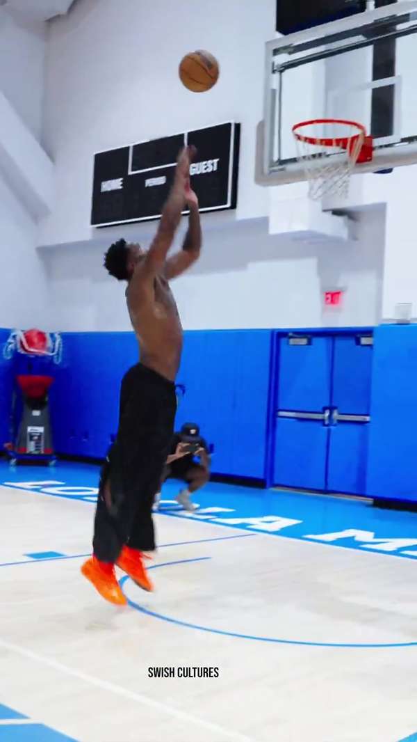 训练过程中,马瑟林重点进行了多项有球练习,尤其是其打板大战斧劈扣动作不仅力量感十足,而且极具观赏性,引来众多球迷点赞。此外,他在节奏变化下的跳投动作流畅,显示出良好的竞技状态和投篮稳定性。